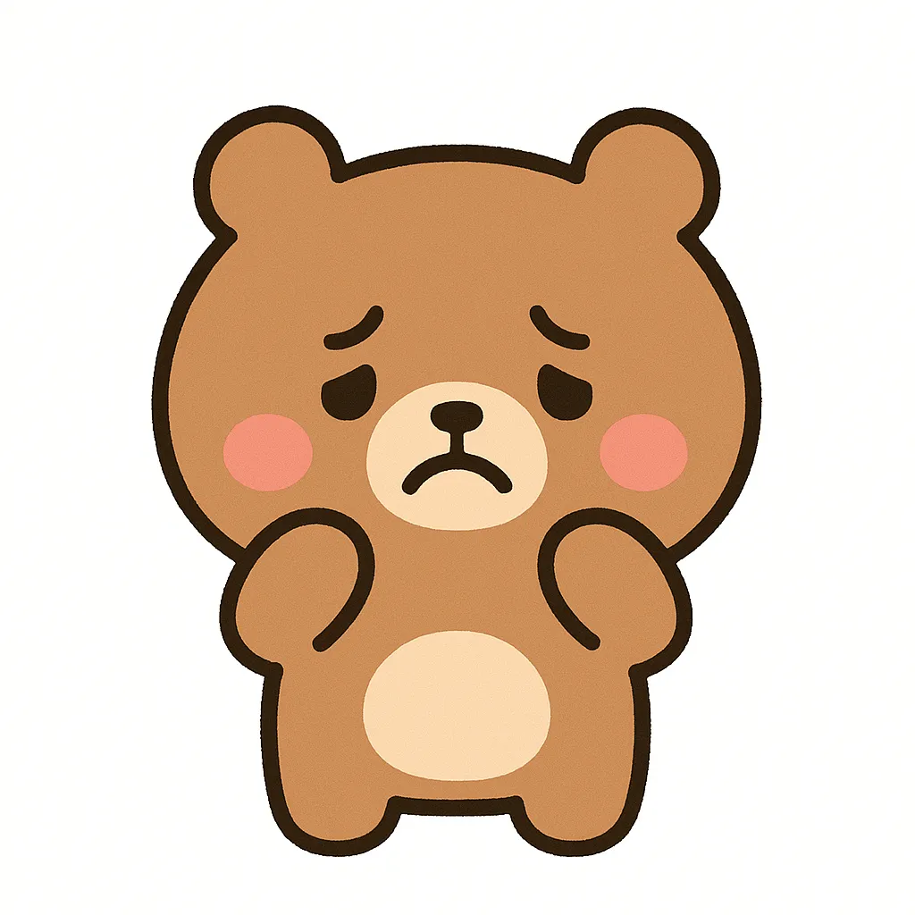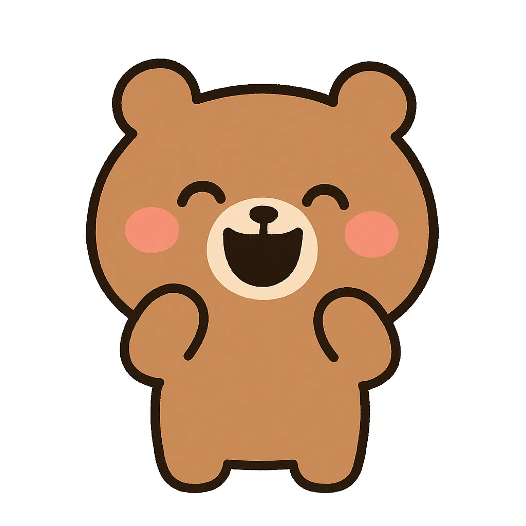 「ほっこり系の茶色いクマのキャラクター。丸い体型で親しみやすく、40代のサラリーマンが職場で使っても恥ずかしくないデザイン」
